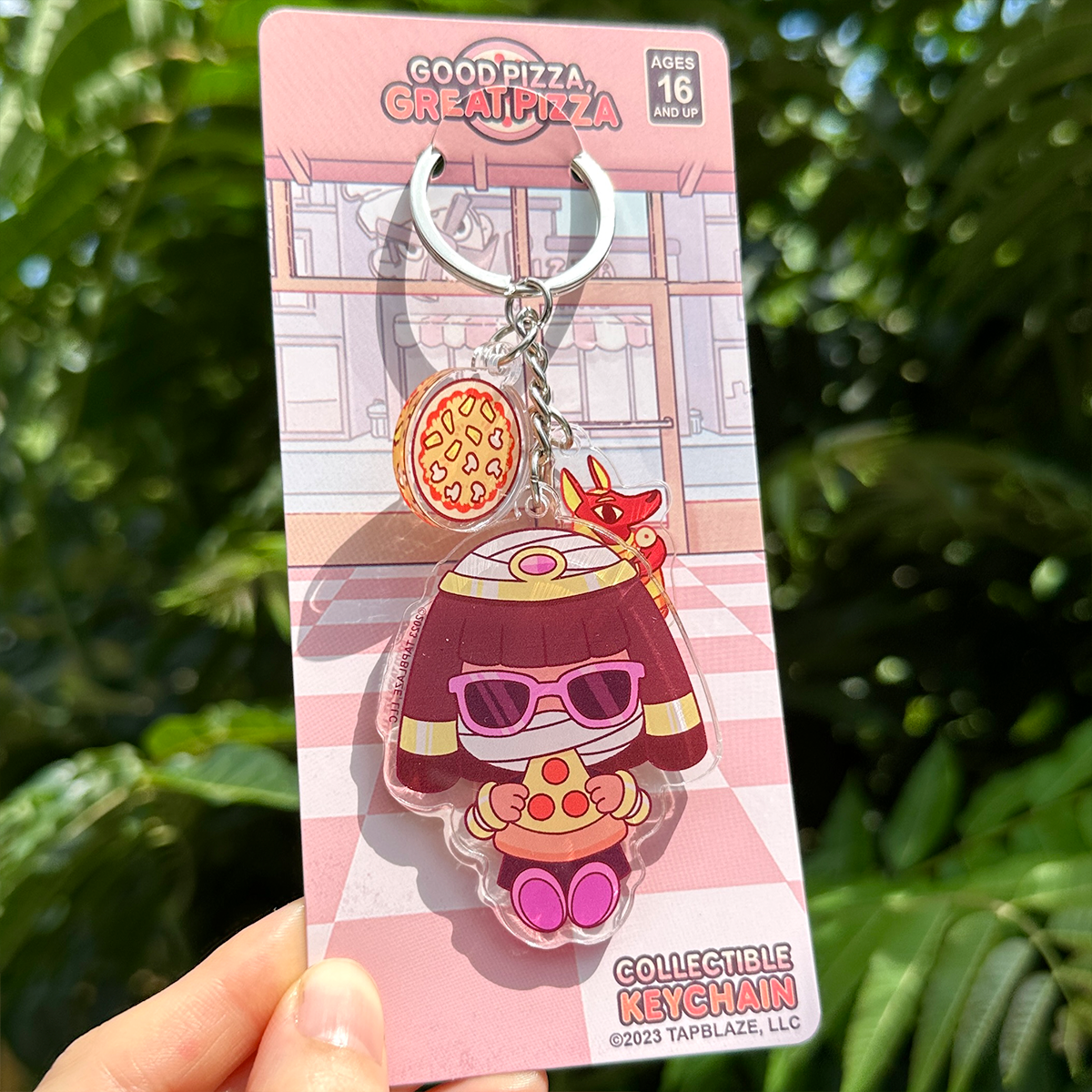 Fresh out of the oven: 8 brand-new, double-sided keychains featuring fan-favorite Good Pizza, Great Pizza characters—Buddy, Alicante, Plant Lady, Pizza Mascot, Dr. Keh, Angelica, Peppertiti, and Kimmy SlicePerfect for keys, backpacks, or gifting to a fellow master ovens. Choose your character!